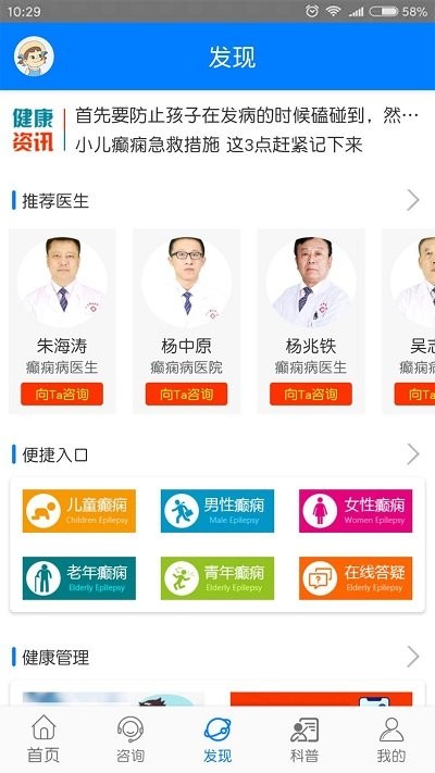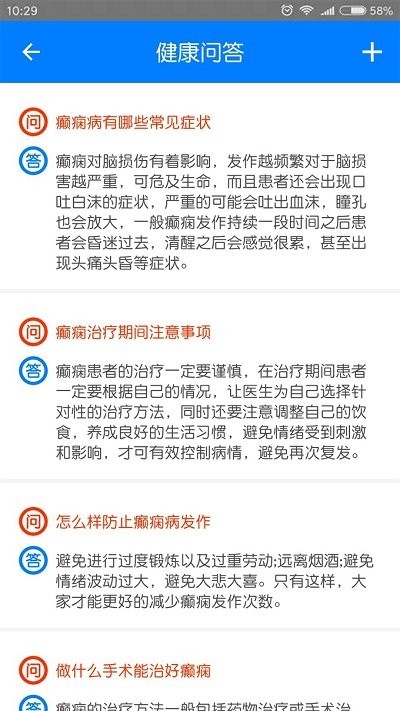 该软件的特色在于针对不同人群提供专业化的癫痫知识:包括儿童癫痫的早期识别、女性癫痫患者的特殊护理、老年癫痫的注意事项等细分内容。平台设有24小时在线答疑服务,由专业医疗团队解答各类癫痫相关问题。每日更新健康资讯板块,涵盖癫痫急救措施、药物副作用预防等安全知识。特别设置的"健康答问"专区,可详细咨询癫痫发作状态处理、日常饮食禁忌等具体问题,获得个性化的专业指导。