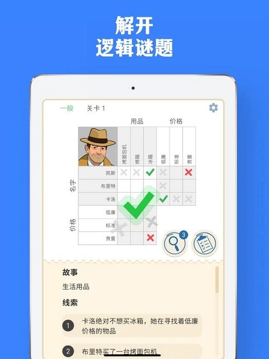 2. 游戏采用关卡制设计,玩家需要依次挑战不同难度的谜题,每关都有独特的解题思路