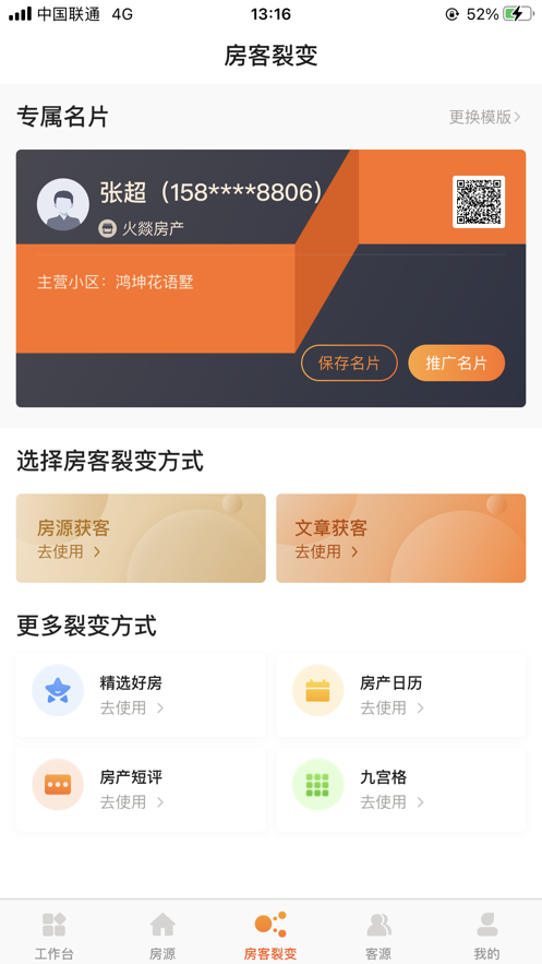 房店通app还提供了丰富的营销工具,帮助经纪人实现高效获客。通过房客裂变、裂变海报、房产日历、房产短评、一键发房等功能,用户可以轻松创建专属的电子名片、店铺或公司的专属二维码,实现多平台、多场景的营销。这些工具帮助用户通过不同的营销方法获得用户,建立自有品牌下的用户流量池。通过分析用户的浏览行为,app能够构建用户需求画像,精准推荐房源,告别传统枯燥的营销方法。