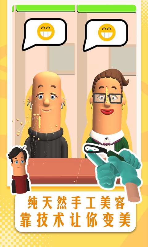 3、超级轻松的游戏关卡设计,适合大部分玩家在闲暇时间进入游戏打发时间。每个关卡都有不同的挑战和任务,玩家可以通过完成任务来解锁更多的美容项目和工具,提升自己的美容技能。