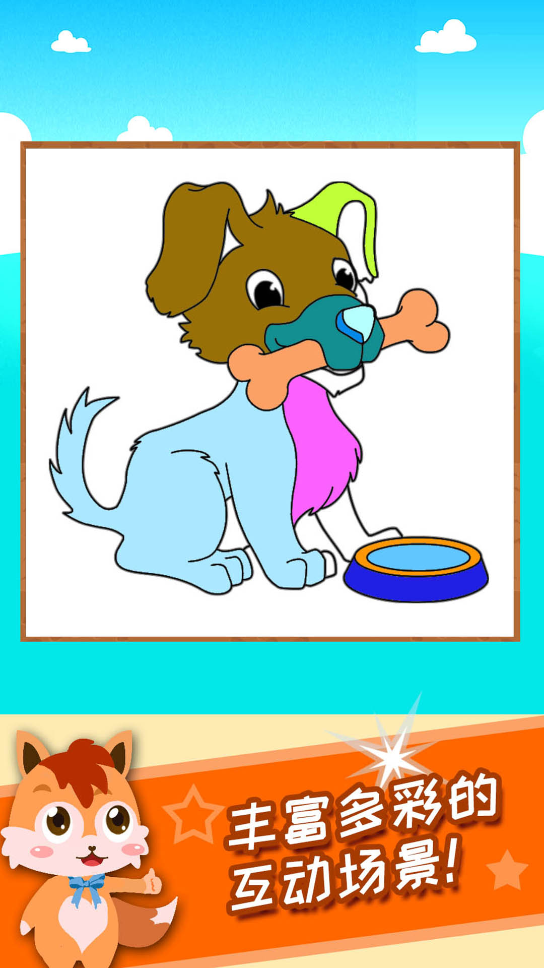 1、提供多个主题场景,从奇幻海底到史前恐龙,满足宝宝单独涂鸦和亲子互动的双重需求,让每一次绘画都充满新鲜感与探索乐趣。2、创新的"会说话"绘画工具设计,当宝宝完成作品时,小动物们会发出可爱的声音反馈,增强互动性,激发孩子的创作热情。3、专业设计的涂色模板和渐进式难度设置,能有效培养孩子的色彩感知力、手眼协调能力,带领宝宝逐步进入美妙的艺术世界,是启蒙绘画的理想选择。