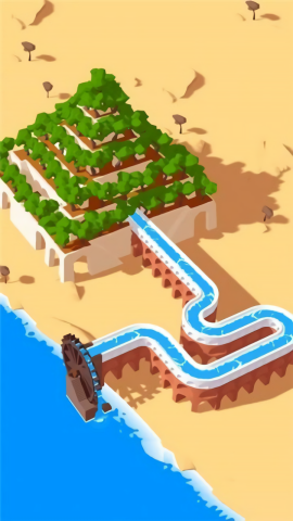 游戏采用清新的卡通风格界面,明亮的色彩搭配让整个城市充满活力。玩家需要仔细观察地形特点,规划最佳引水路线。城市建筑会随着水资源的补充逐渐恢复生机,这种视觉反馈让玩家直观感受到自己的努力成果。每个区域都有独特的美术设计,从沙漠绿洲到海滨城市,场景变化丰富多样。