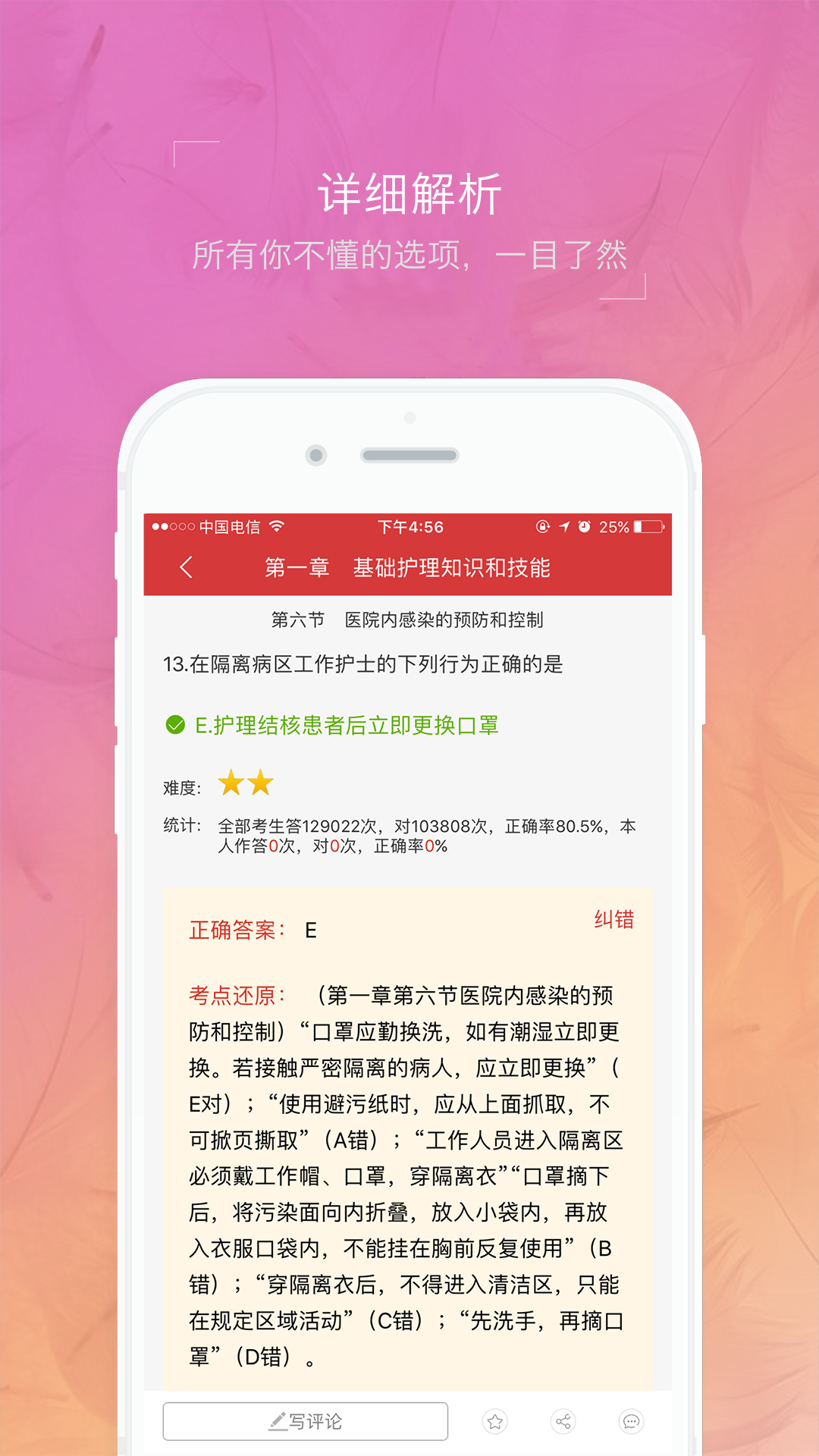 执业护士资格考试题库-蓝基因是由北京蓝基因科技有限公司开发的一款针对全国护理专业学生考试的应用。本应用不仅包涵历年真题与模拟题,而且对每个选项都进行了详细的解析说明,并且将考点还原到教材,另外还有视频课程等学习功能。包涵2011年至今七年真题以及模拟题,近5000道题目,而且题库永久免费!另外还增加了一些辅助学习功能,掌上刷题体验更好,复习备考不再枯燥!蓝基因app还提供了多种学习模式,如机考模拟、测试、通关教材、考点狂背、高频题目等,帮助用户全面掌握考试内容。此外,应用还支持错题记录、收藏功能、答疑服务和视频课程,确保用户能够针对性地进行复习。通过这些功能,考生可以更加高效地备考,提升通过考试的几率。