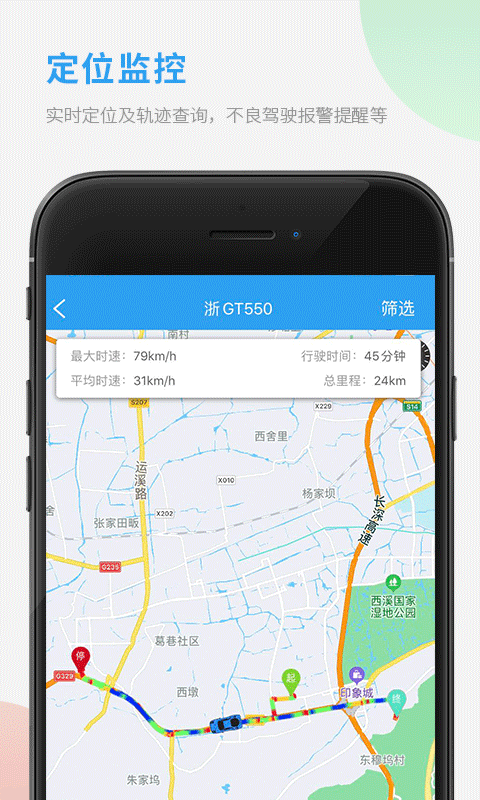 支持实时定位追踪和历史轨迹查询,具备超速报警、偏离路线提醒等安全预警功能,确保车辆行驶安全可控。
