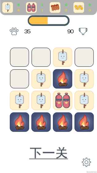 4、操作简单直观,只需点击移动火堆,但要烤熟当前关卡指定的食物才能顺利通关;