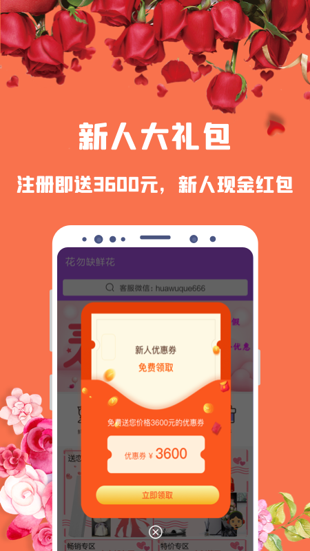 【感恩特惠—送好礼】为了回馈新用户的支持,花勿缺鲜花特别推出了感恩特惠活动。现在注册花勿缺鲜花APP,即可直接获得3600元的鲜花新用户礼包,让你在初次使用时就能享受到超值的优惠。无论是为自己选购鲜花还是送给亲朋好友,这份礼包都能为你带来更多的惊喜。