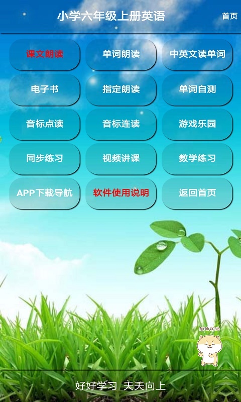 1、小学英语六年级上册所有课文、单词的翻译、朗读,帮助学生更好地理解课文内容。