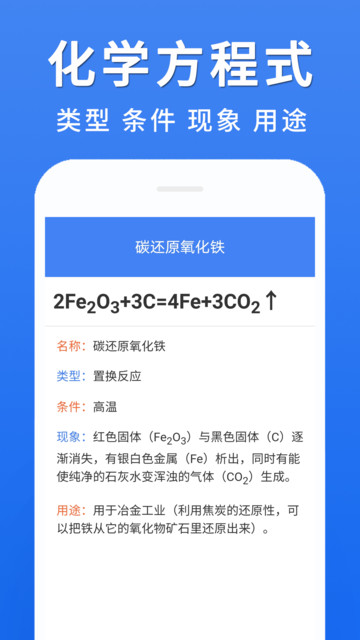 【化学方程式】初中化学大全APP涵盖了初中阶段所学的所有化学方程式,包括化学方程式的反应类型、反应条件、实验现象和用途等内容。每个方程式都配有详细的解析,帮助学生理解反应的本质和过程。此外,应用还提供了化学方程式的分类和搜索功能,方便学生快速找到所需内容。