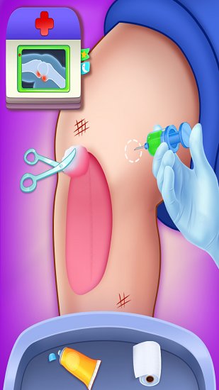 2、眼前的这个人似乎正受伤着,让我们使用各种设备来治愈它,这是一款很棒的游戏。游戏中的设备种类繁多,从简单的创可贴到复杂的手术器械,玩家需要根据病人的具体情况选择合适的工具进行治疗。通过不断的实践,玩家可以掌握各种医疗设备的使用方法,提高自己的医疗水平。