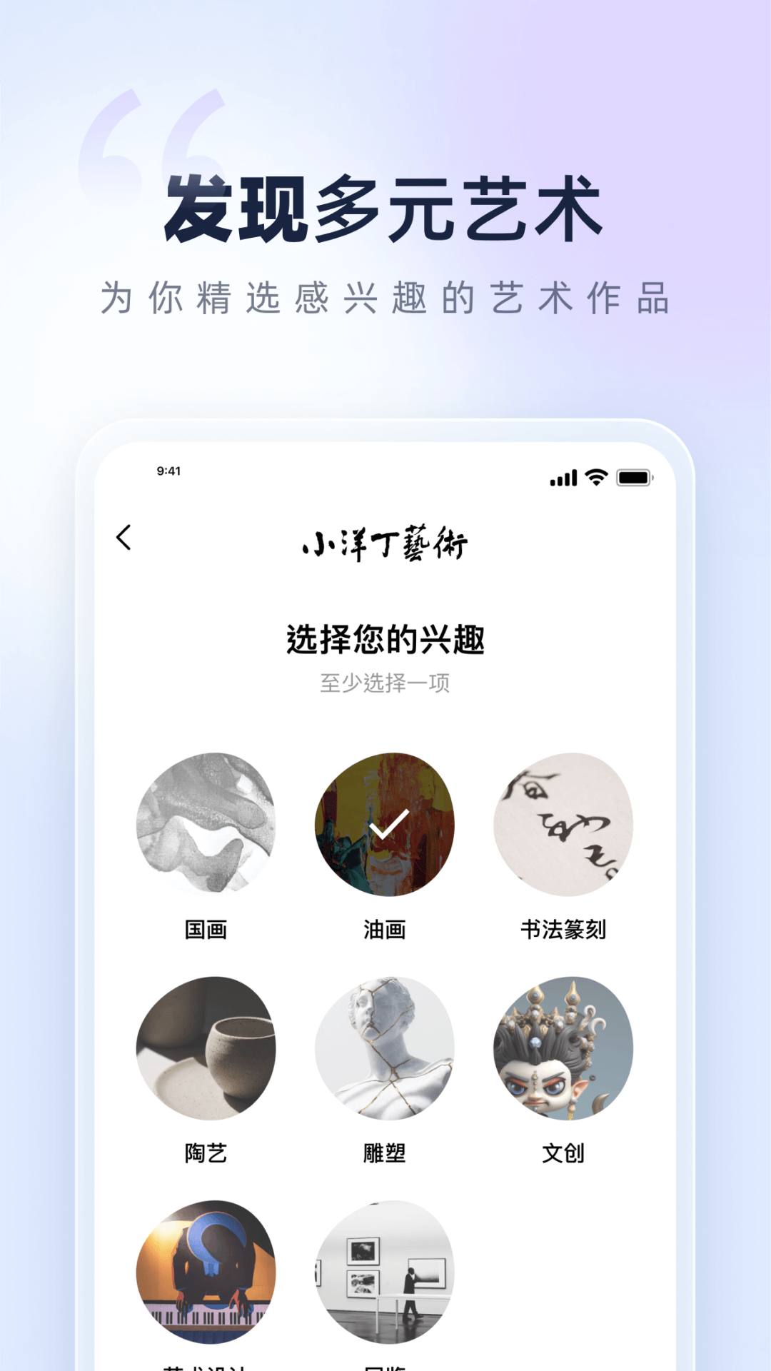 小洋丁艺术app是一款专为艺术爱好者打造的优质专业交流平台。在这里,用户可以随时在线分享和讨论各种艺术话题,内容涵盖广泛且多元。无论是当代艺术、传统国学,还是书法绘画,小洋丁艺术app都能满足您的需求。通过这个平台,艺术家可以找到展示才华的舞台,爱好者也能轻松获取艺术灵感。下载小洋丁艺术app,让艺术真正走进您的生活,开启一段充满创意与美感的旅程。