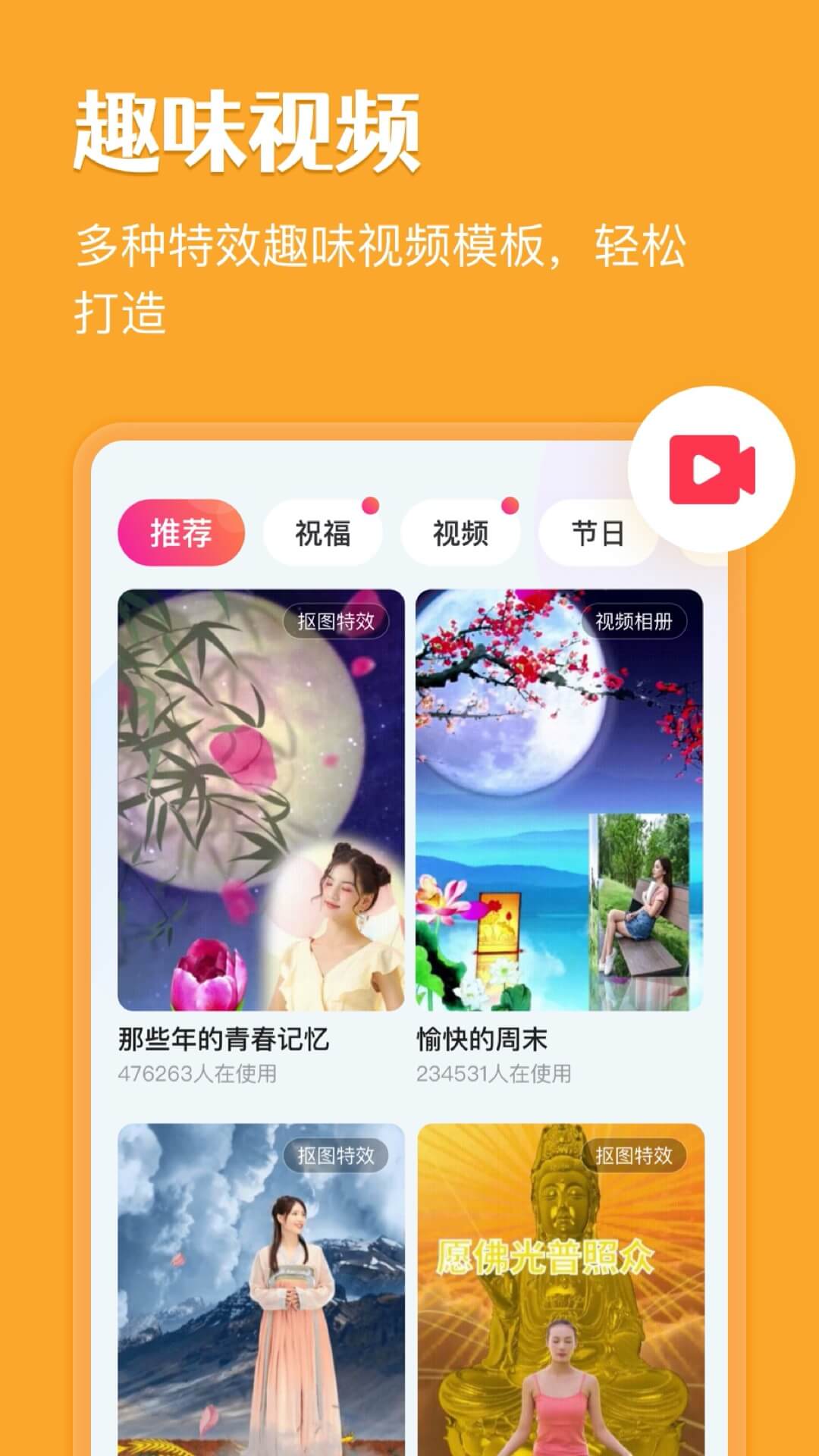多种趣味视频模板,轻松打造个性化视频。用户可以选择不同的模板,制作出独具特色的短视频,分享给朋友和家人。