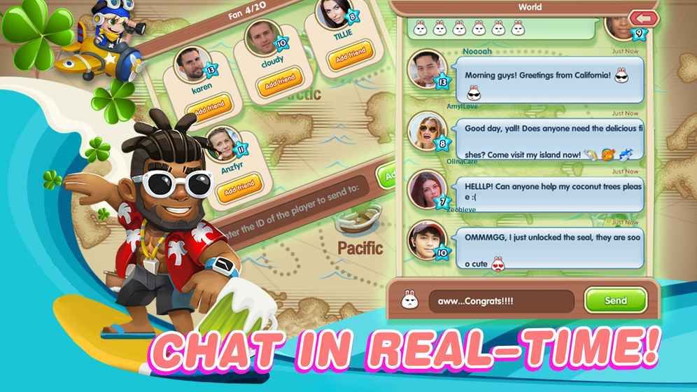 2、自由贸易结交更多的好友:独创的"漂流瓶"社交系统,可将特产装入瓶中随机漂向其他玩家的海岸,收获惊喜的同时还能解锁跨国贸易成就;