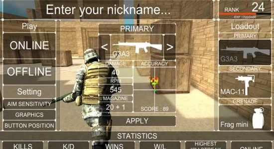 1、游戏开始前,玩家可在右侧武器库中自由选择主副武器,左侧则提供了多种战斗场景选项,建议新手先从简单地图开始熟悉操作;