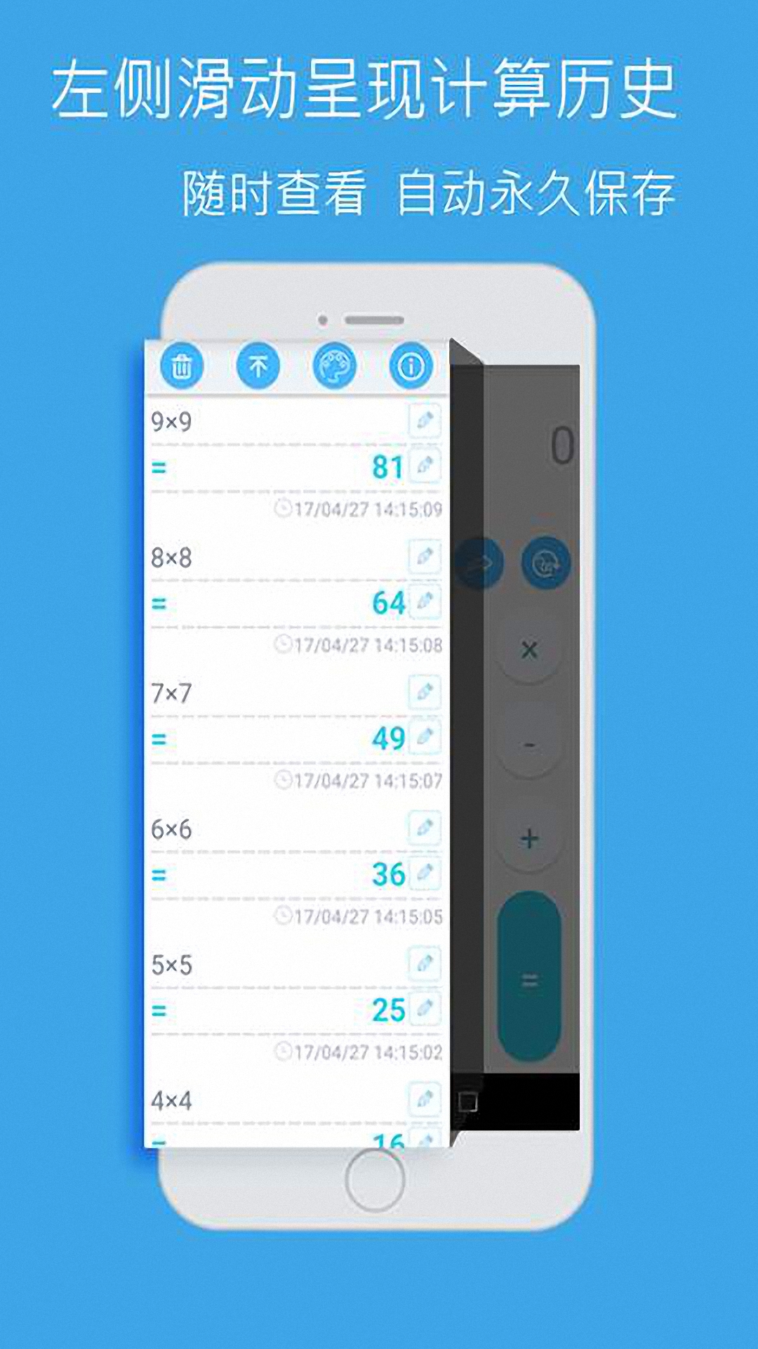 3.左侧滑动抽屉呈现最近计算,应广大用户要求永久储存,现在更支持按日期分类和关键词搜索,方便用户快速查找历史记录;