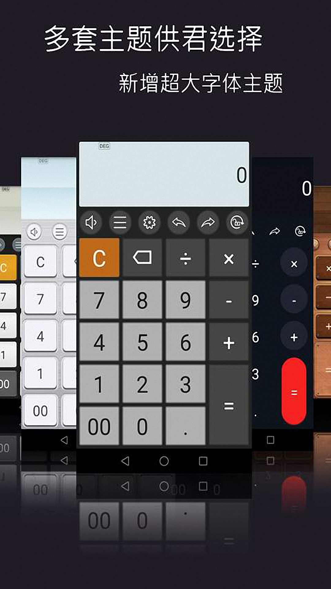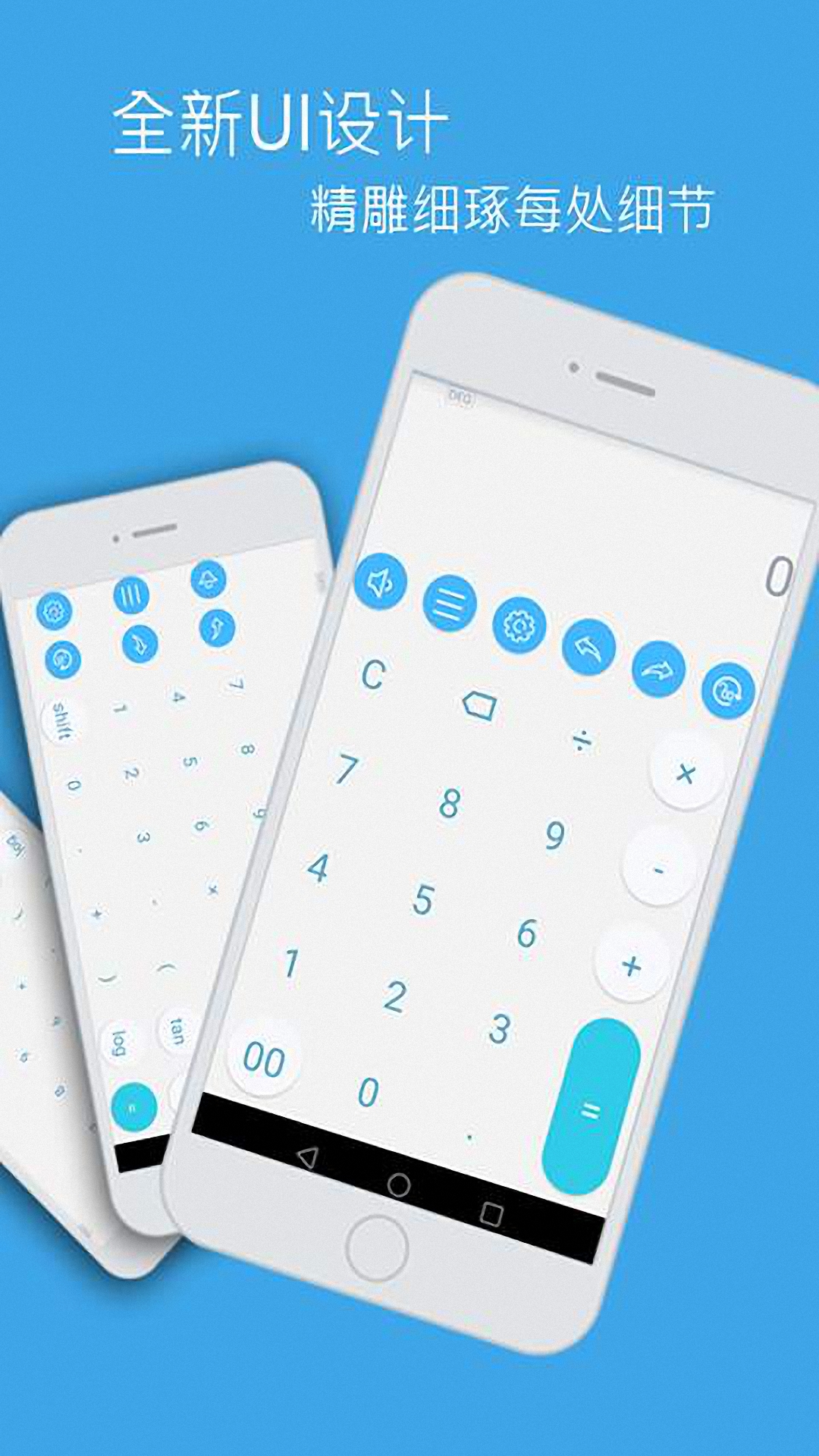 1.全新UI设计遵循Material规范扁平、拟物风格任君挑选,用户可根据个人喜好自由切换主题颜色和布局样式,打造专属计算空间;