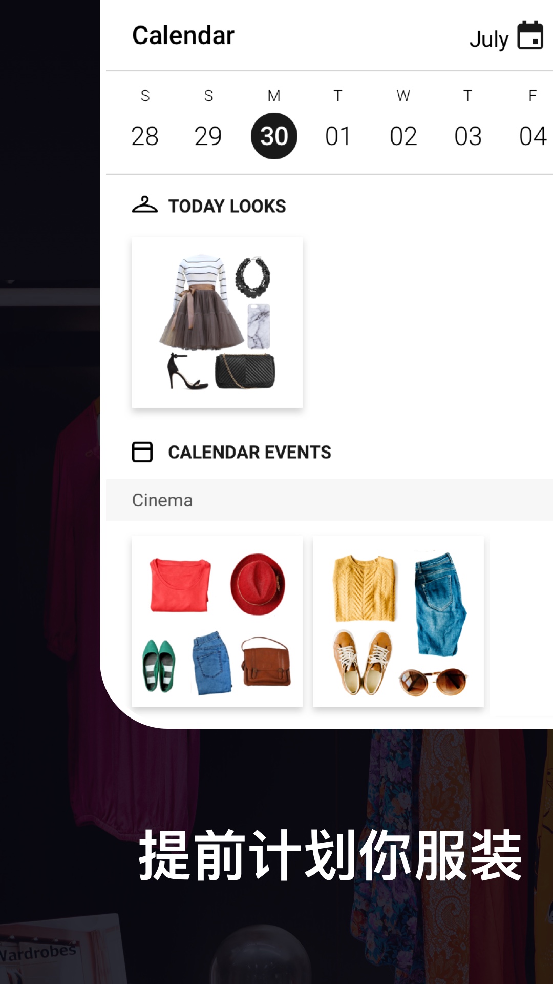 计划你的时尚穿搭:用户可以将重要事件添加到日历中,并根据场合选择适合的穿搭。应用支持与手机日历同步,确保用户不会错过任何重要时刻,同时也能轻松规划每日的时尚造型。