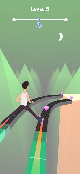 3、游戏上手不难,游戏中的角色会自动向前滑行,而需要玩家控制的,只有人物腿张开的幅度。通过增加或者减少腿张开的幅度,来躲避障碍。这种简约而不简单的操作方式,既保证了游戏的易上手性,又为高手玩家提供了深度钻研的空间。