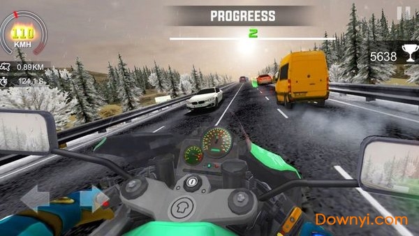 真实的场景和车辆模型:利用最逼真的光影效果、天气效果和场景赛车模型,打造出城市街道、雪原公路、高速公路等多个真实场景,真实录制的音效和激扬的音乐,让你尽情享受摩托车驾驶的乐趣!游戏中的每个场景都经过实地考察,连路面的纹理和建筑物的细节都高度还原,配合动态天气系统,雨天湿滑的路面和雪天的低能见度都将考验你的驾驶技术。