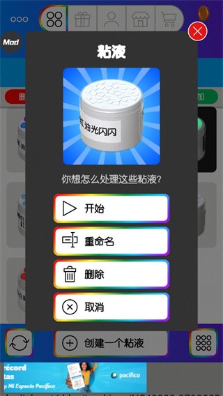 4、在粘液模拟器中前期的准备工作就绪后,同样切换上方箭头进行下一级,在这里点击屏幕添加初学者胶水。原料配比会直接影响成品质量,建议新手按照系统推荐比例操作。高级玩家可以尝试非常规配方,有机会创造出隐藏的特殊效果。