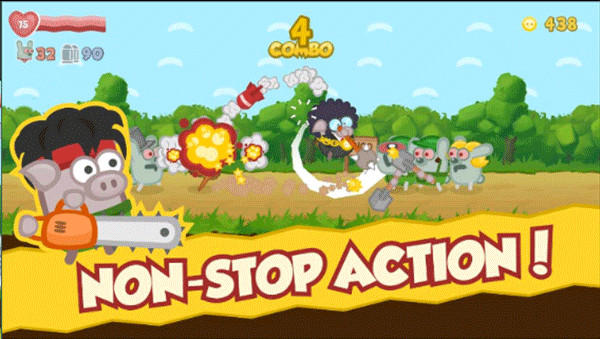 1、在游戏中,玩家将操控一只外表呆萌实则凶悍的小猪,每天都要面对形形色色的敌人挑战,体验暴力与可爱的完美碰撞。2、游戏的核心玩法就是击败所有敌人,虽然画面风格卡通,但战斗过程相当硬核,玩家可以使用各种武器将对手打得粉碎。3、武器系统非常丰富,既有远程的突击步枪,也有近战的大锤等装备,让玩家可以自由选择战斗风格。4、游戏巧妙融合了肉搏与远程战斗的乐趣,操作简单但策略性强,适合各类玩家体验。