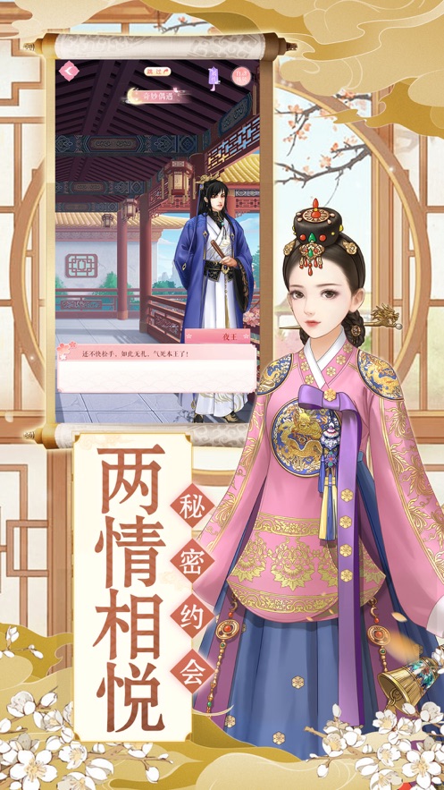 3、浪漫的恋爱系统,玩家可以邂逅多位身份各异的角色,包括皇子、大臣等。通过日常互动和特殊事件培养感情,最终收获属于自己的宫廷爱情故事。