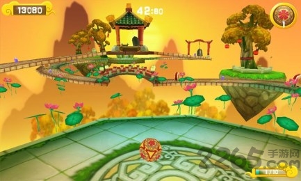 游戏画面堪称移动端的视觉盛宴。使用Unity引擎打造的3D场景中,八卦平台镶嵌着会发光的甲骨文,背景的星云会随关卡进度变换颜色。动态天气系统让玩家可能遭遇飘落的梅花雨或突然出现的雷暴。球体本身具有物理材质反馈,在青石板上滚动与在青铜鼎上滑行的音效与痕迹都截然不同。4K画质模式下,可以清晰看到竹制轨道上的纹理和铜质机关的反光效果。特别值得一提的是过场动画,采用水墨风格渲染七星重归天位的壮观景象,每一帧都可截图作为壁纸。