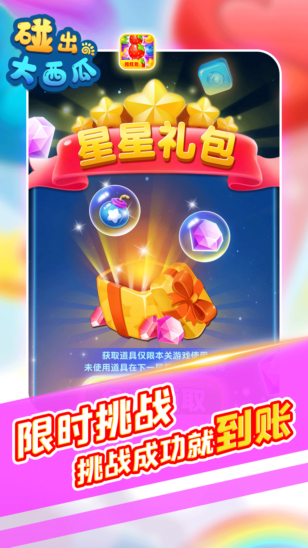 《碰出大西瓜天天》是一款全新上线的休闲消除游戏,玩法简单有趣,还能轻松赚取红包奖励。游戏采用经典的水果消除玩法,玩家只需点击相同颜色的水果方块即可完成消除。新用户注册即可获得百元红包,通过签到、闯关、完成任务等多种方式都能获得现金奖励。红包金额最低2元起,提现门槛低至0.3元,操作便捷。游戏还设置了丰富的关卡挑战和限时活动,让玩家在享受消除乐趣的同时,还能获得实实在在的现金收益。