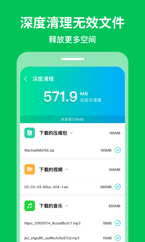 【一键清理】采用多线程扫描技术,30秒内完成全盘垃圾扫描,支持自定义清理范围,清理后手机流畅度可提升40%,特别适合存储空间告急的用户。