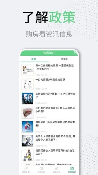 贴心的购房助手:内置全流程购房知识库,涵盖从看房技巧、合同陷阱识别到收房验收的287个知识点。特别设置"小白模式",通过互动问答形式帮助首次购房者建立系统的购房知识体系。