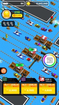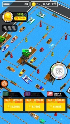 在《海口大亨》中,船只的数量直接决定了金币的获取速度,玩家需要用金币不断扩张港口,以容纳更多的船只。游戏为玩家提供了一个建立海上货运帝国的机会,玩家可以通过解锁更多炫酷船只来提升运输效率,从而获取更多的金币奖励。此外,游戏还支持离线收益,即使玩家不在线,港口依然会持续运作,为玩家带来稳定的收入。无论是港口规划还是船只管理,玩家都需要精心策划,才能在竞争激烈的海洋货运市场中脱颖而出。
