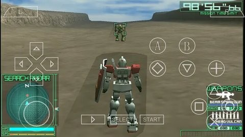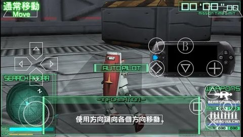 方向键→←↑↓:控制机体基础移动,可在设置中切换为虚拟摇杆操作模式。快速双击方向键触发闪避动作,长按则消耗喷射槽进行冲刺移动。左摇杆←→用于切换雷达锁定的敌方目标,配合右摇杆可实现更精准的视角控制。○键发动主武器攻击,□键使用副武器进行辅助打击,×键执行跳跃动作(长按可蓄力提升高度)。△键激活近战格斗,L键兼具防御与特殊行动功能(如特殊冲刺/格斗),R键快速锁定视野内敌人。START键调出系统菜单,SELECT键切换观察视角。组合键方面,L+○发动蓄力射击(消耗1SP),L+□切换主武器类型,L+×实现400单位冲刺撞击(消耗1SP),L+△释放蓄力格斗。×+□组合用于机体变形/脱离载具,○+△发动消耗5SP的必杀技,而L+○+△组合可激活觉醒状态(消耗10SP),期间获得无敌效果并提升射速,但会暂时禁用SP积累功能。