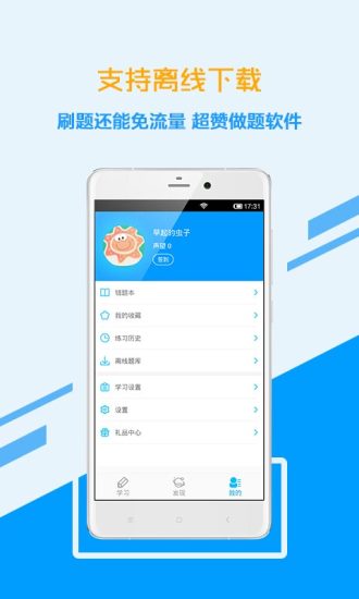 2.创新的离线模式支持全功能使用,每日签到可累积离线时长,地铁、郊游等无网络环境也能持续刷题,系统自动同步练习记录至云端。