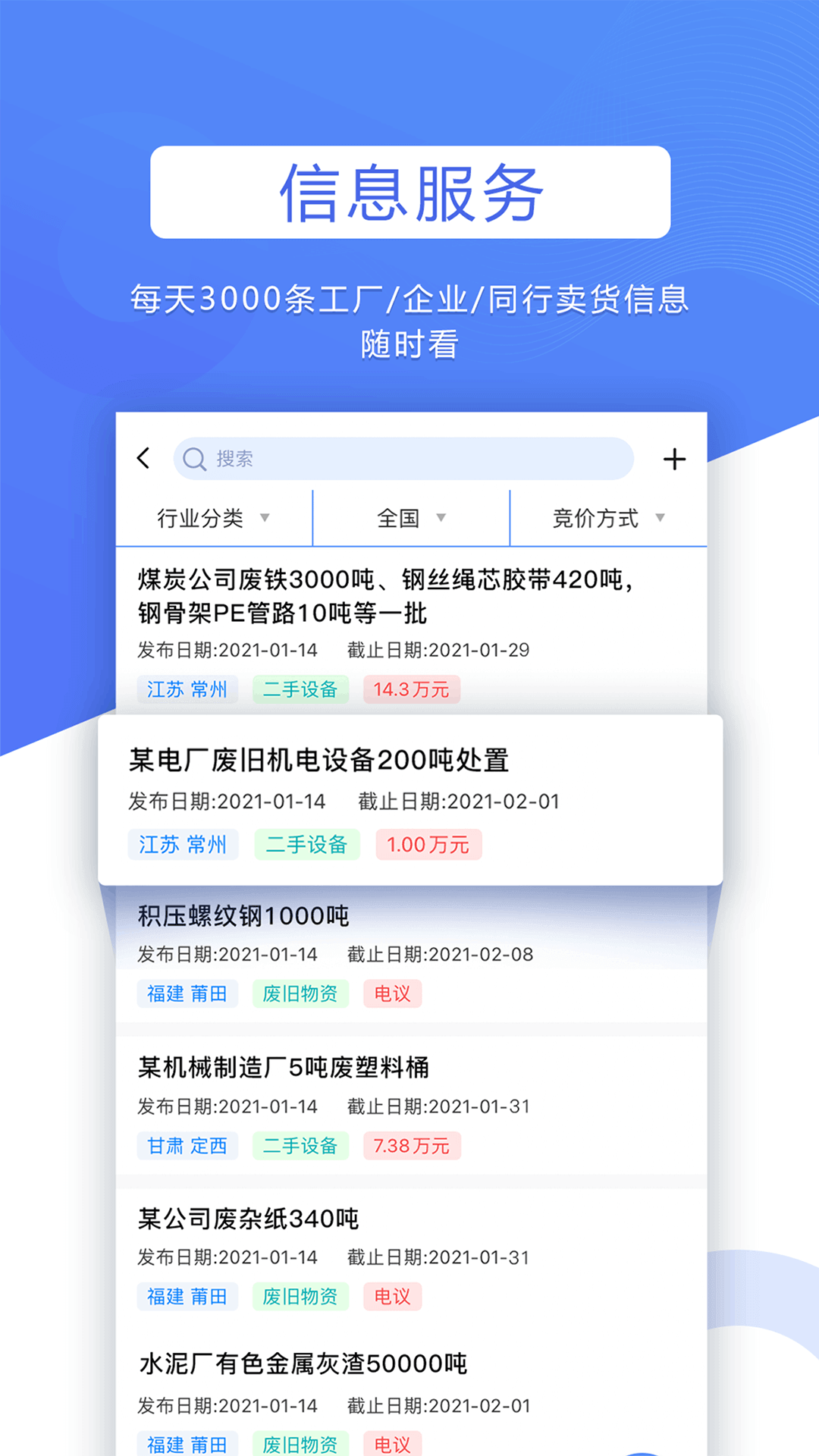 整合全国工厂企业废旧物资处置信息,实现一站式查询