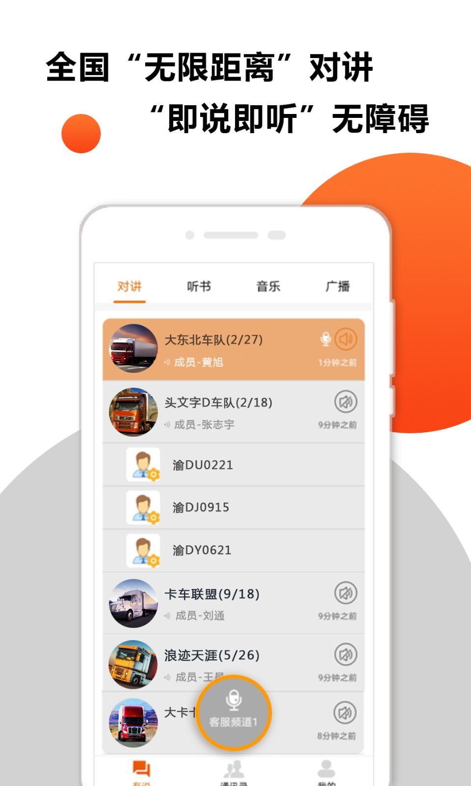 有说司机对讲APP是一款专为实时对讲设计的社交应用,支持自由创建群聊和多人语音对讲功能,突破距离限制,实现一呼百应的便捷沟通。该应用兼容安卓系统,并支持选配蓝牙手咪、对讲机等硬件设备,进一步提升使用体验。无论是日常交流还是紧急联络,有说司机对讲APP都能为用户提供稳定、高效的沟通解决方案,满足不同场景下的需求。