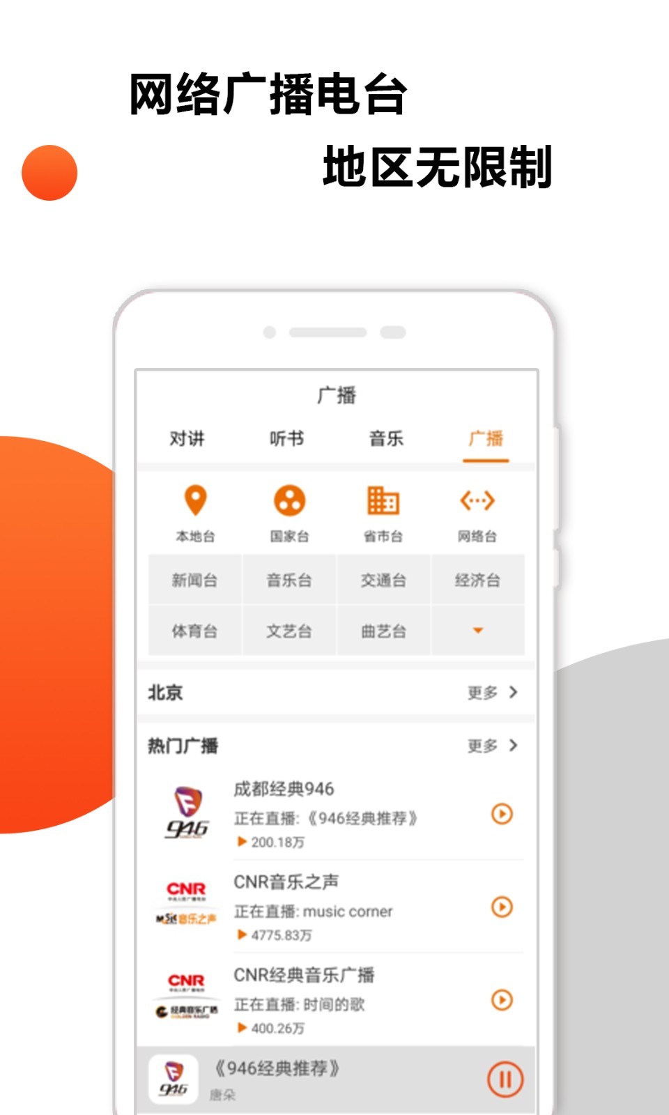 3、网络广播电台,地区无限制,随时随地收听全球各地的广播节目。