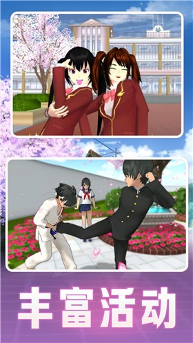1、游戏采用精美的日系画风,搭配轻松愉悦的背景音乐,为玩家营造出完美的校园氛围,让玩家仿佛置身于真实的樱花校园之中。