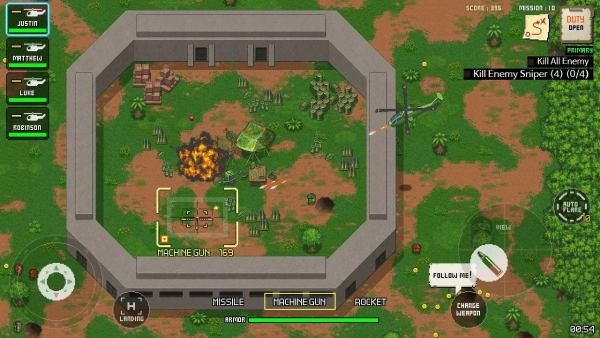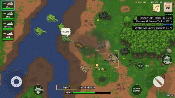 3、像素艺术与物理特效的完美结合,子弹碰撞会产生绚丽的粒子效果,载具爆炸时飞溅的碎片会形成二次伤害。部队升级系统包含50多种迷彩涂装,成就解锁的黄金武器皮肤极具收藏价值。