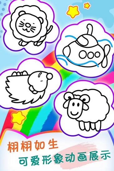 1、这是一款极具创意的儿童绘画游戏,拥有海量绘画素材库,包括各种可爱的动物、漂亮的植物、有趣的交通工具等。小朋友可以根据自己的喜好选择绘画对象,真正做到想画什么就画什么;