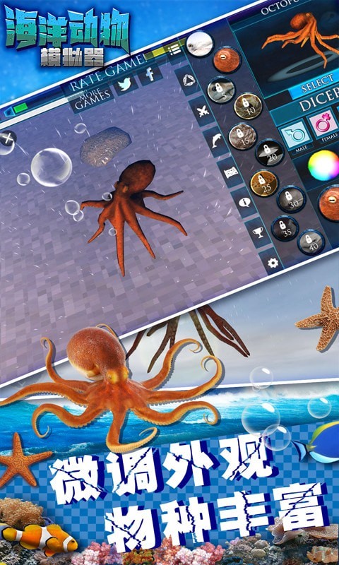 游戏中你可以去选择一个自己喜欢的动物开始冒险,从30多种可操控角色中挑选你的海底化身。每种生物都拥有独特的技能树,比如章鱼的伪装能力、电鳗的放电攻击等。游戏创新性地引入了食物链系统,玩家需要通过捕食来维持生命值,同时避免成为其他掠食者的目标。完成主线任务可以解锁稀有皮肤和特殊能力,比如发光水母的荧光皮肤。昼夜交替系统和随机天气变化,让每次冒险都充满新鲜感。