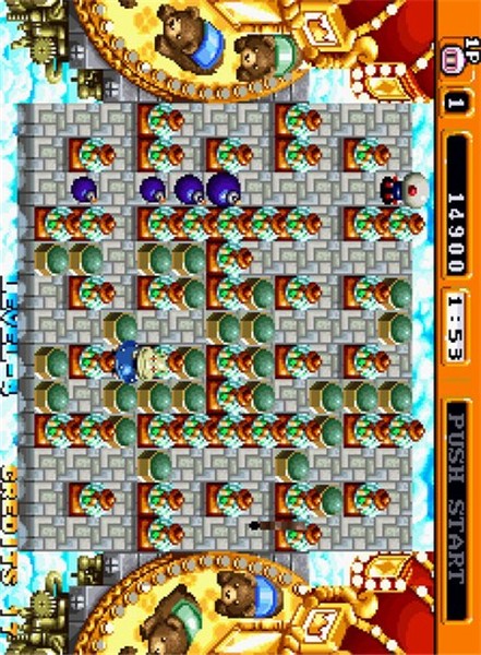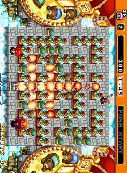 游戏采用直观的虚拟摇杆控制系统,左侧摇杆控制角色移动,右侧按钮放置炸弹。玩家可以根据习惯选择横屏或竖屏操作模式,游戏会自动适配不同设备。在游戏开始前需要先按虚拟投币键,再按开始键进入游戏。如果遇到操作提示,使用方向键即可完成确认。游戏还支持自定义按键布局,玩家可以调整按钮位置和大小以获得最佳操作体验。初次运行时若出现卡顿,建议退出后重新启动游戏,这通常能解决大部分兼容性问题。