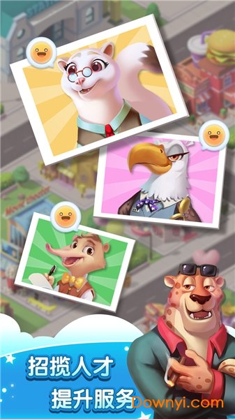 2.兔子,大象,海豚,老虎或鸟类,您可以尽一切努力来增加商店容量。每种动物都有专属的增益效果,比如兔子能提升收银速度,大象可以增加客容量。