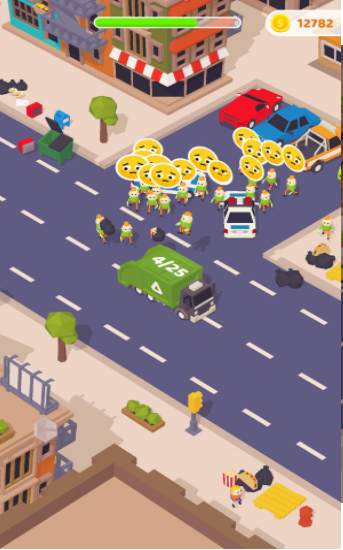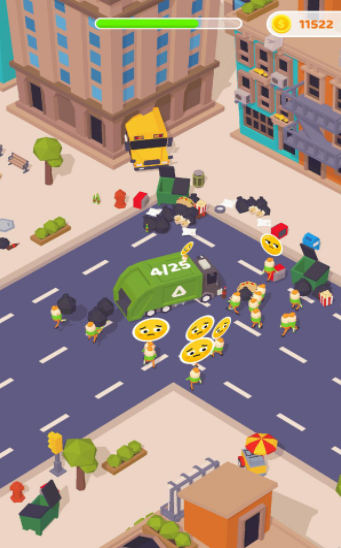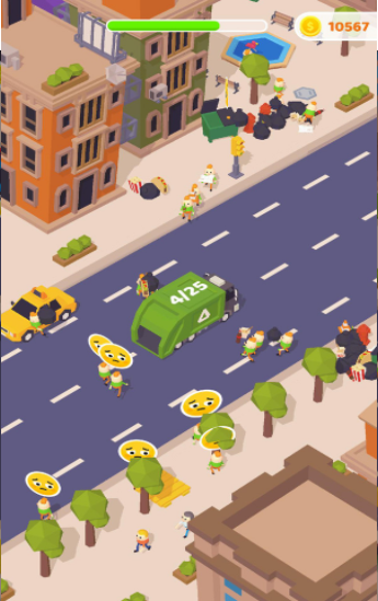 1,在游戏中你将驾驶专属汽车穿梭于城市各个角落,带领由可爱小人组成的清洁团队展开垃圾收集行动。通过精准操控和合理规划路线,让原本脏乱的城市重新焕发光彩,每个被清理的区域都会以肉眼可见的变化展现你的劳动成果。