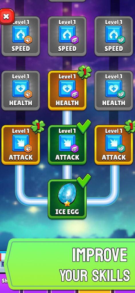 1、融合志同道合的动物,释放它们隐藏的潜力,比如合并两只猎豹可获得闪电突击者。