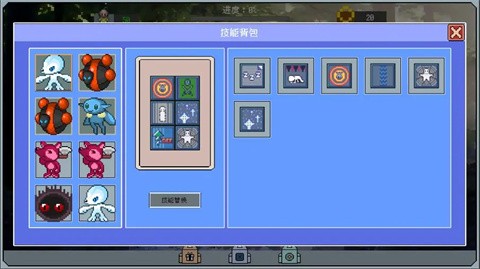 1、左侧为当前精灵阵容,中间为精灵背包,背包有容量限制。右边为精灵信息栏,点击技能可以查看技能介绍。精灵背包可通过升级基地设施扩容,最高可携带12只精灵。信息栏会详细显示精灵属性成长曲线、技能树和羁绊关系,帮助玩家制定培养策略。