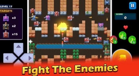 《坦克大战2》是一款充满激情的像素风格坦克射击手游,将玩家带入硝烟弥漫的战场。游戏采用复古的像素美术设计,搭配直观的触控操作,让玩家轻松上手的同时体验策略与操作的完美结合。在游戏中,你可以选择多种独特坦克,根据战场形势灵活调整战术,利用地形优势和武器装备制造致命陷阱。无论是单人突袭还是团队协作,都需要你精准操控坦克,在枪林弹雨中摧毁敌方基地,感受最真实的坦克对决快感。丰富的游戏内容和极具挑战性的关卡设计,将带给玩家持续的新鲜感和成就感。