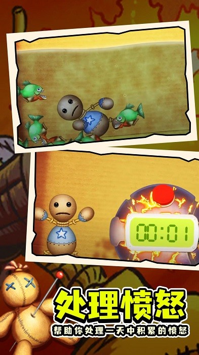 4、创新的针刺玩法会发出真实的木头穿刺声,而会移动的假牙则可以咬断木偶四肢。玩家还可以踩踏木偶的手脚,体验全方位的发泄乐趣。