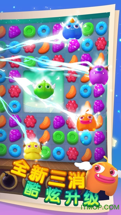 《怪兽消消消》是由国内顶尖手游开发团队原班人马历时两年精心打造的全新三消力作。游戏继承了团队前作广受好评的核心玩法,同时在画面表现、游戏内容和社交互动等方面进行了全面升级。玩家将跟随蠢萌可爱的魔法小怪兽艾乐瑞,踏上一段充满惊喜的消除冒险。游戏世界构建了一个完整的糖果王国,从甜蜜的棉花糖云朵到神秘的巧克力迷宫,每个场景都充满了想象力。除了传统的消除玩法,游戏还融入了角色养成、装备收集等RPG元素,让玩家在享受消除快感的同时,也能体验到角色成长的乐趣。