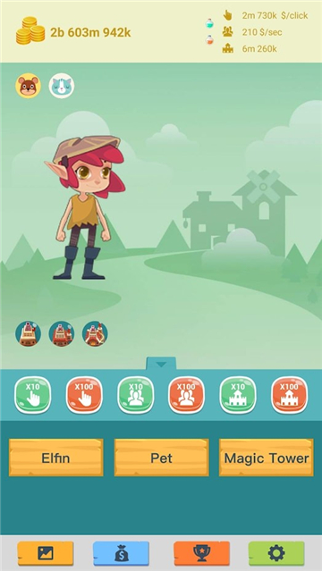 《闲置精灵大亨》是一款极具趣味性的休闲游戏,玩家在游戏中将扮演一位精灵管理者,通过经营与冒险相结合的方式,带领精灵开启一段奇妙的旅程。在探险过程中,精灵会遇到各种有趣的奇遇,玩家可以通过事件薄记录这些精彩瞬间。同时,沿途散落的大量金币需要精灵收集,这些金币可以用来购买各种道具和用品,提升冒险体验。游戏整体氛围轻松愉快,奇遇事件层出不穷,仿佛置身于一个充满魔法的童话世界,让玩家在探索中不断发现惊喜。