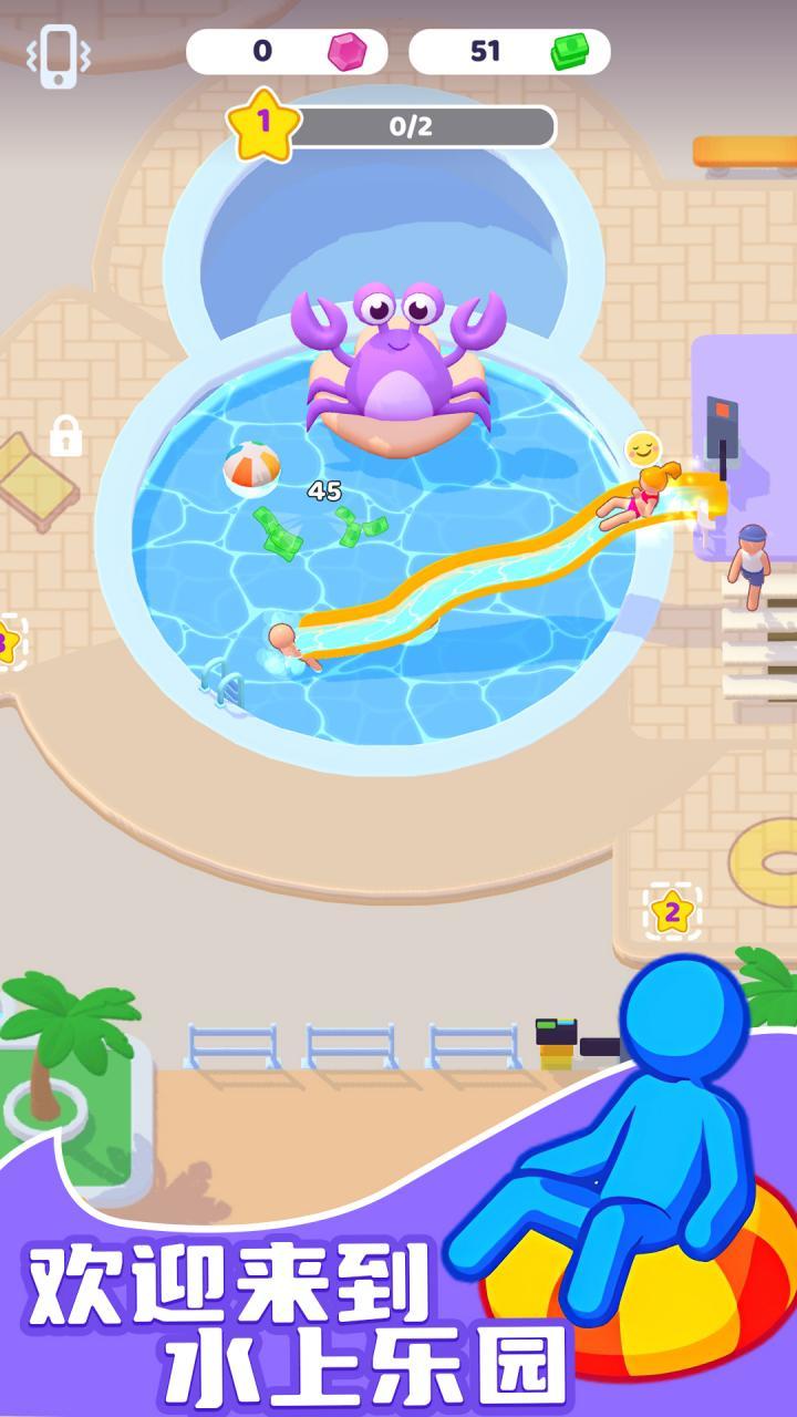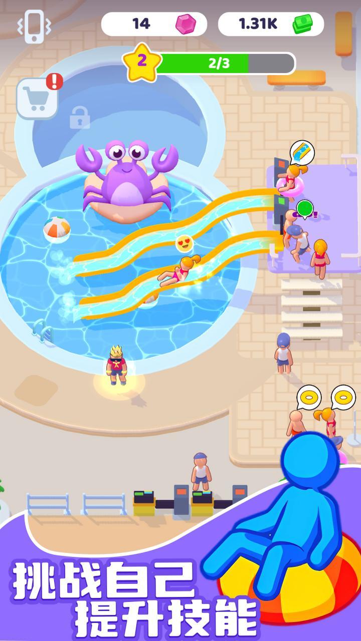 自由建设:游戏赋予玩家极高的自由度,从选址规划到设施建造,每个细节都由你掌控。你可以设计惊险刺激的滑水道组合,打造梦幻的漂流河道,或是建造别致的主题泳池,完全按照自己的创意来打造独一无二的水上乐园。游戏还提供丰富的装饰元素,让乐园更具个性化魅力。