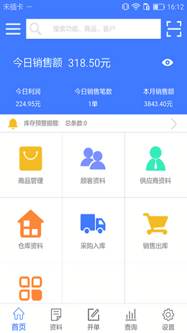 傻瓜进销存手机版是一款十分专业的进销平台,里面包含了销售,管理,财务等多种实用功能,可以帮助用户对自己的门店进行管理,查看每天的销售额,还有花销,总结当日去除开销后的金额,还有店铺货物的管理,货物购买和上架等等,以图形化的凡是展示货物的状态。